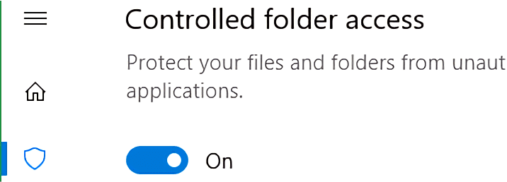 Controlled folder access adalah fitur untuk mengontrol akses dalam folder folder tertentu. Gunanya untuk melindungi data-data file yang penting dari aplikasi dan ancaman berbahaya, seperti virus ransomware. Fitur ini terdapat pada Windows Defender Antivirus, yang sudah diperkenalkan pada Windows 10 Insider Preview Build 16232.